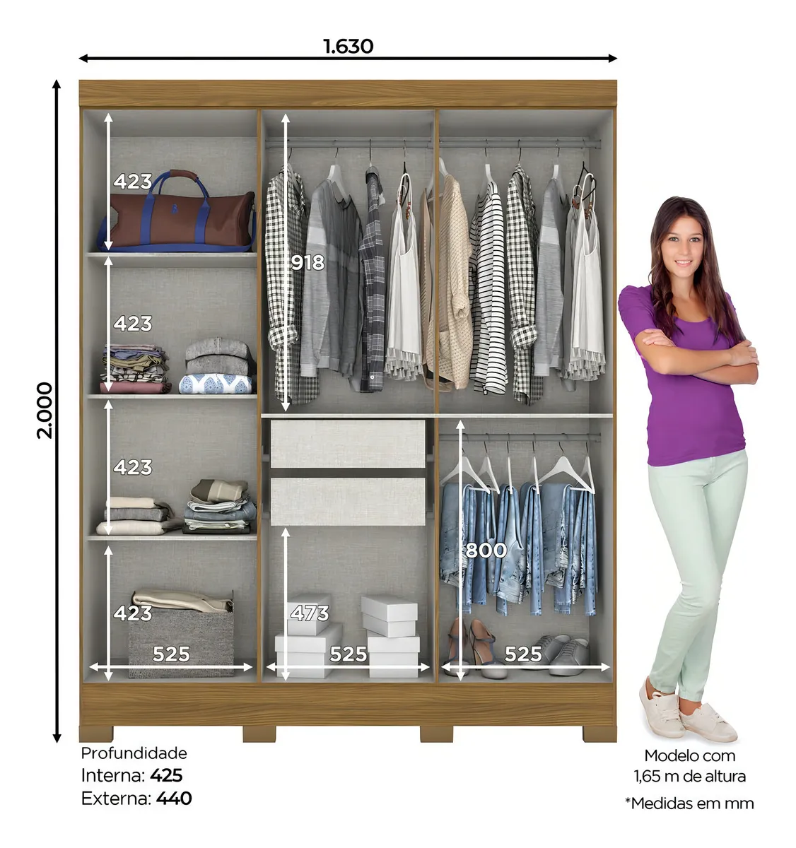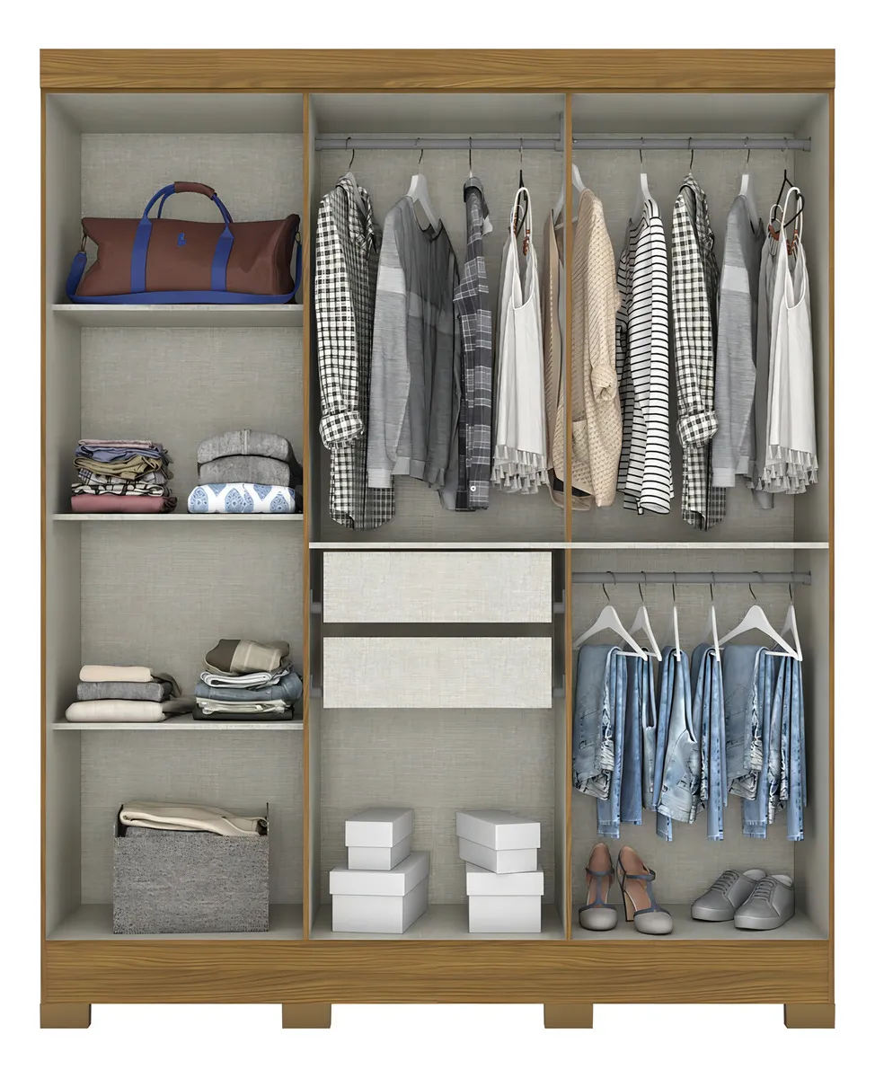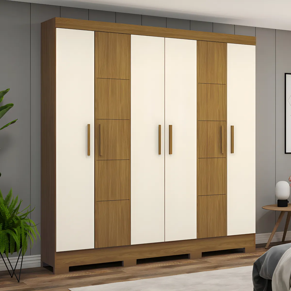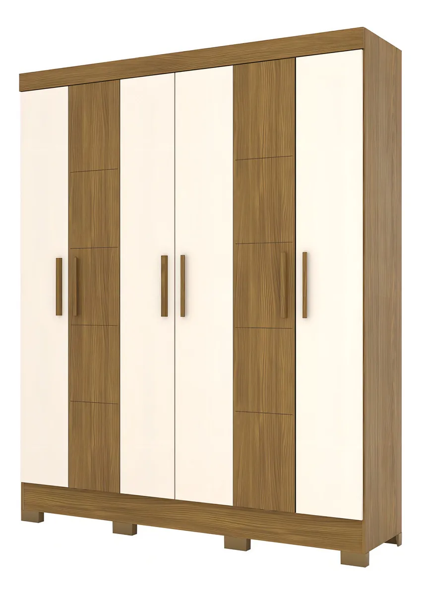 O Roupeiro 6 Portas Nature/Off White oferece amplo espaço interno e um design moderno que combina tons amadeirados com acabamento claro, deixando o ambiente mais aconchegante e sofisticado. Com boa distribuição interna, cabideiros, prateleiras e nichos, é ideal para manter roupas e acessórios sempre organizados. Uma opção funcional, resistente e esteticamente elegante para qualquer dormitório.