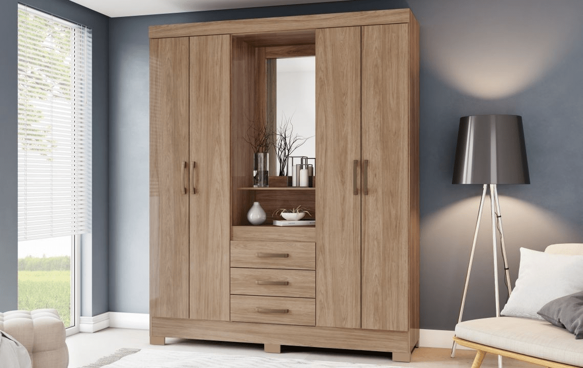 Roupeiro 4 Portas 3 Gavetas Jequitibá Brilho – B24-198