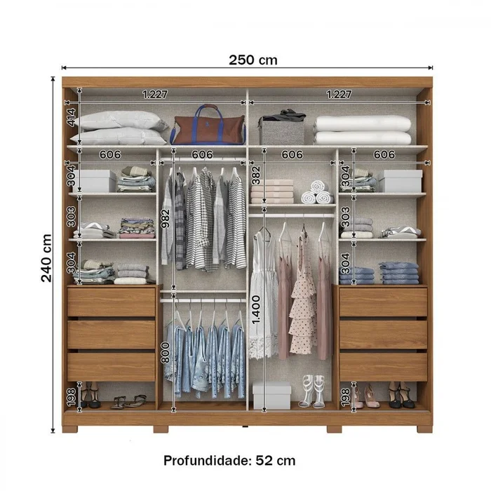 Com 2 portas deslizantes, otimiza o espaço do ambiente, tornando-o perfeito para quartos compactos. Internamente, possui prateleiras e cabideiros bem distribuídos, oferecendo amplo espaço para roupas, calçados e acessórios, mantendo tudo organizado de forma prática