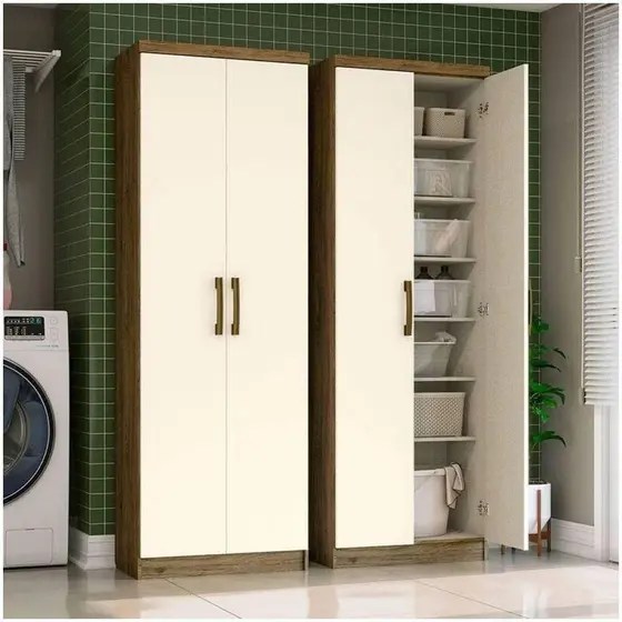 Equipado com 2 portas, oferece espaço interno suficiente para guardar roupas, calçados, acessórios ou outros itens do dia a dia. Internamente, conta com prateleiras bem distribuídas, facilitando a organização e o acesso aos objetos armazenados.