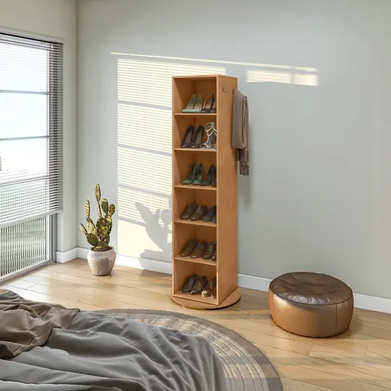 Sapateira prática e elegante, modelo Esthela 2024, ideal para manter calçados organizados e protegidos. Estrutura em MDP de alta resistência com acabamento amêndoa clean, que combina facilmente com diferentes estilos de quarto ou closet. Possui portas com puxadores modernos e prateleiras internas bem distribuídas, oferecendo ótima capacidade de armazenamento. Design funcional que alia organização e sofisticação
