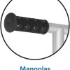 Guidão com empunhaduras emborrachadas para melhor pegada.