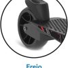 Freio traseiro eficiente, com acionamento simples e resposta imediata.