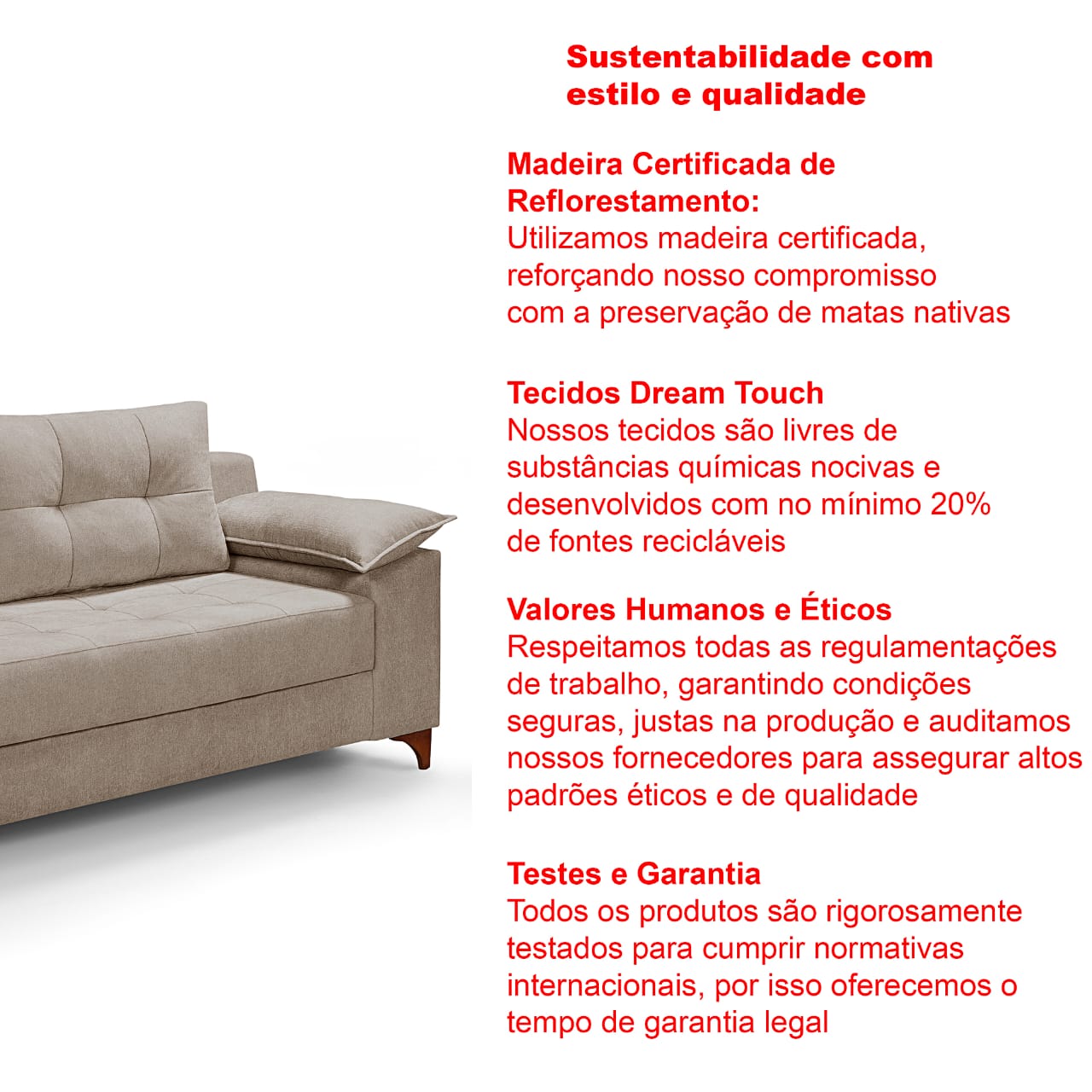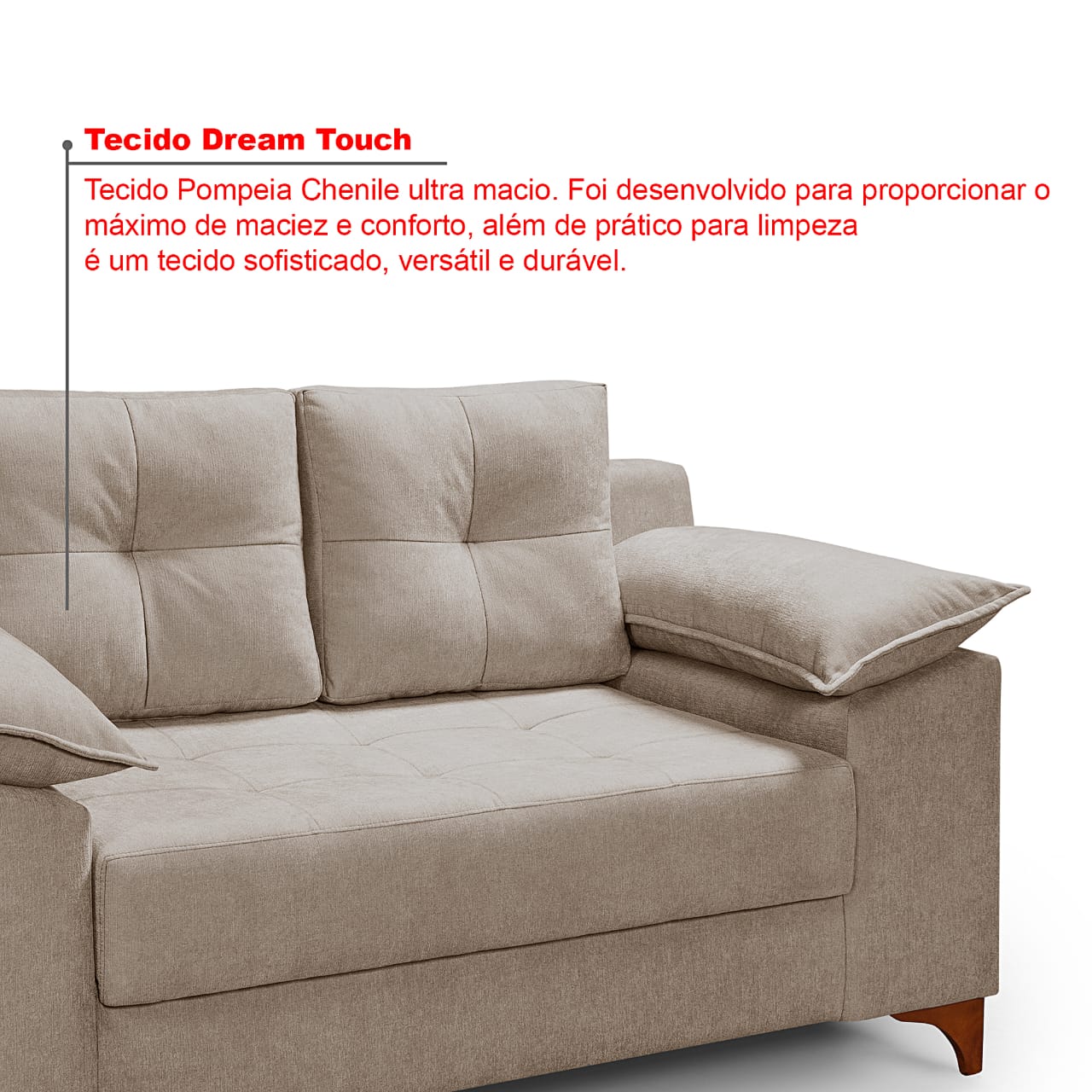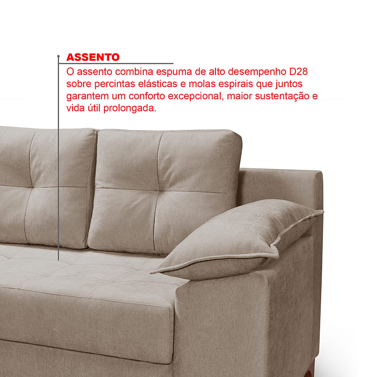 Encosto Estofado com espuma mais leve ou fibra, encosto fixo com costura decorativa