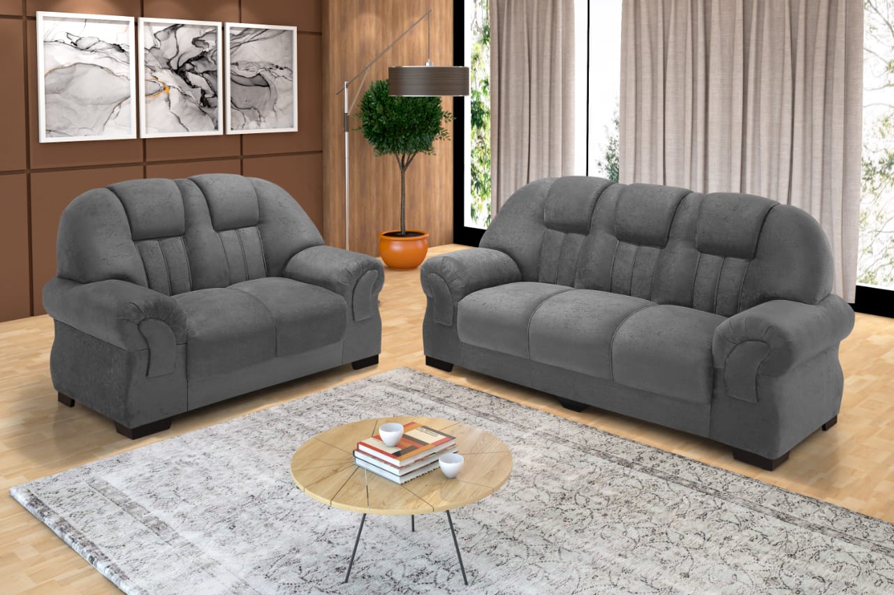Sofá Tatyane B380, conjunto de 2 e 3 lugares, design contemporâneo, estofamento confortável, ideal para salas de estar que unem estilo e aconchego.