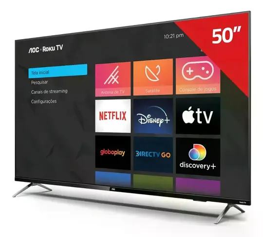 ? TV 50″ AOC Smart Roku UHD 4K 50U7045/78G – Preto Bivolt
