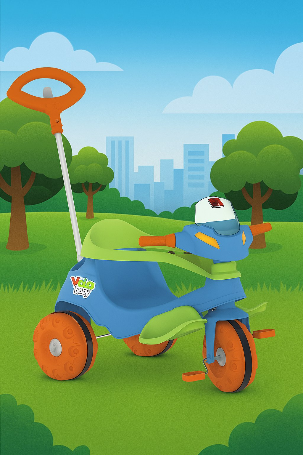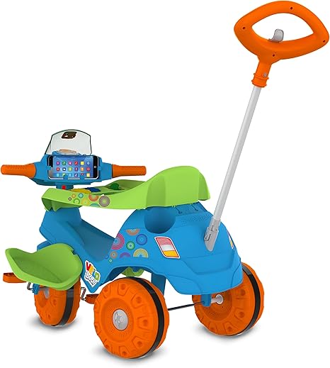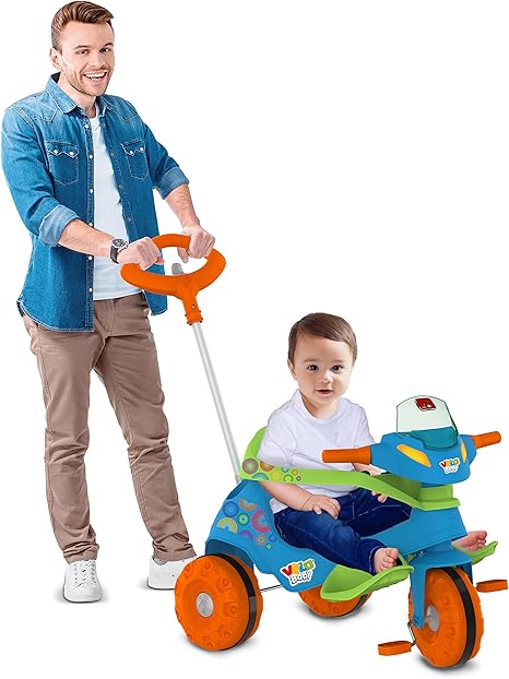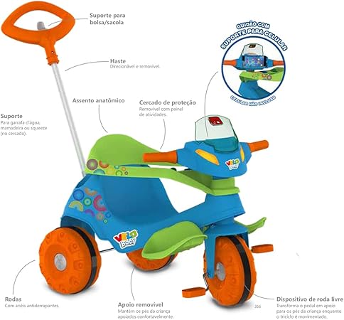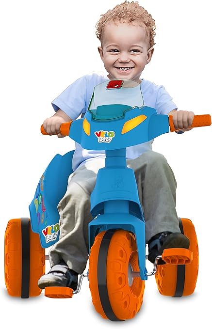Veículo infantil Velobaby com pedal, ideal para passeios seguros e divertidos de crianças. Estrutura resistente e design moderno na cor azul, proporcionando conforto e estabilidade. Equipado com pedais que auxiliam no desenvolvimento da coordenação motora, além de rodas projetadas para maior segurança durante o uso.