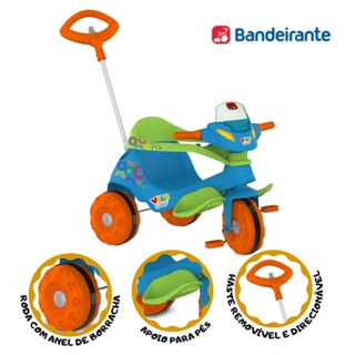 FUNÇÃO PASSEIO: O adulto utiliza a haste direcionável para conduzir o triciclo. Basta , colocar o cercado de proteção e o apoio dos pés.